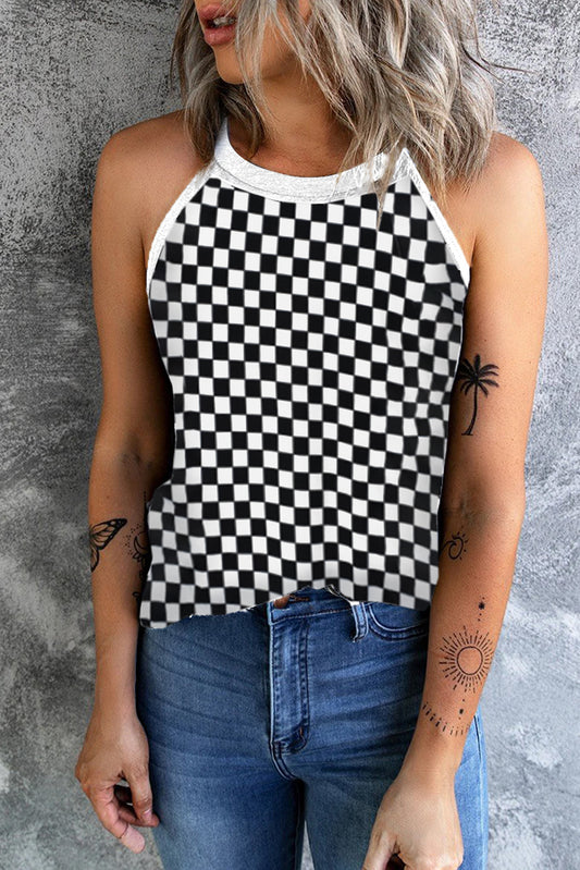 Sold outCheckered Grecian Neck Tank
