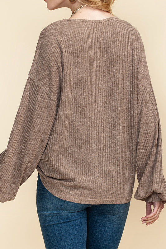 Round Neck Dropped Shoulder Lantern Sleeve T-Shirt