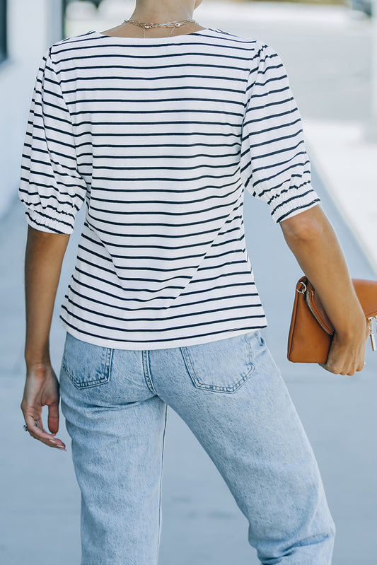 Striped Half Puff Sleeve Square Neck T-Shirt