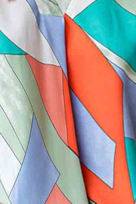 Ruffled Printed Mock Neck Cap Sleeve Blouse