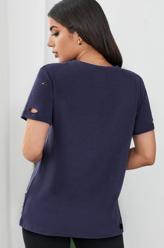 Sequin Star Round Neck Short Sleeve T-Shirt