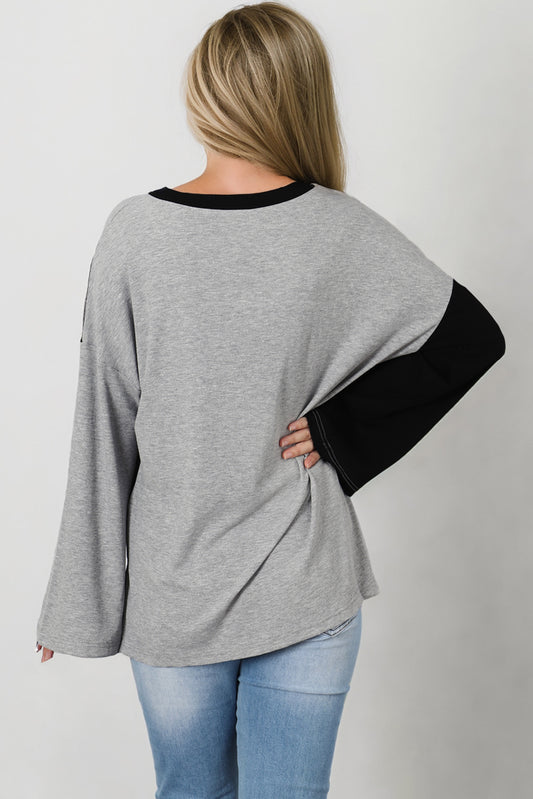 Checkered Contrast Round Neck Long Sleeve T-Shirt