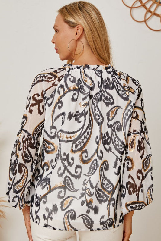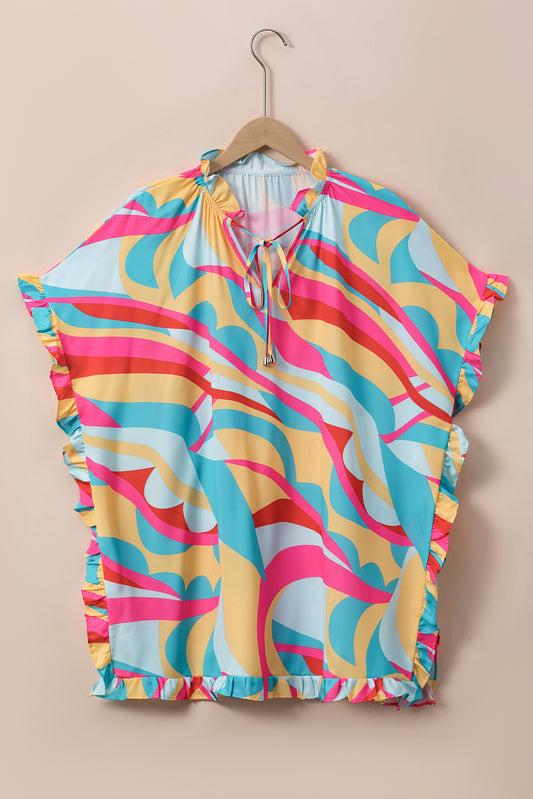 Sold outPrinted Tie Neck Half Sleeve Blouse