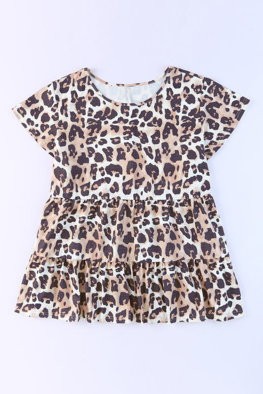 Plus Size Leopard V-Neck Short Sleeve T-Shirt