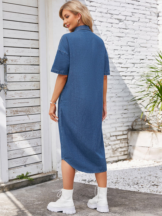 BOMBOM Striped Short Sleeve Dress with Pockets