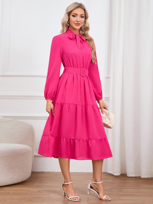 Sold outTie Neck Long Sleeve Tiered Dress