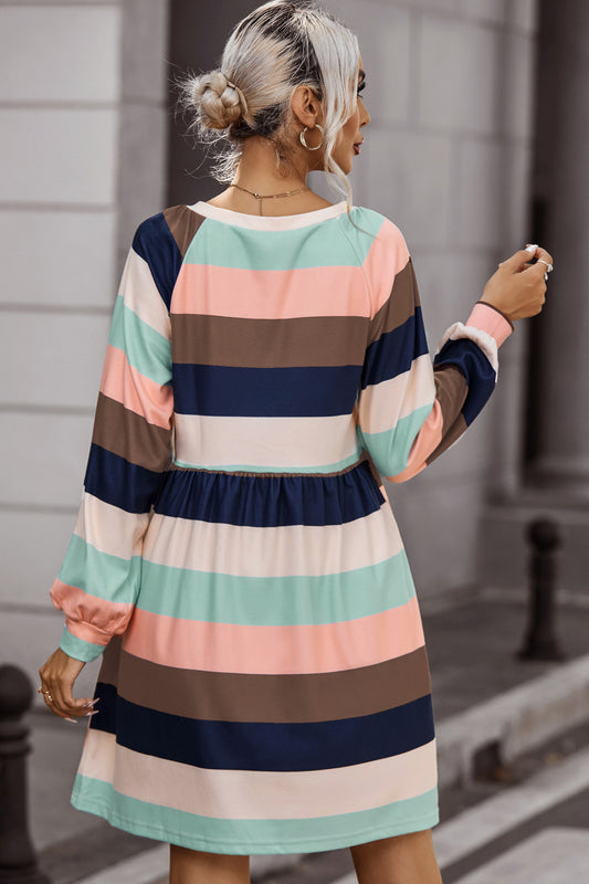 Striped Round Neck Dress with Pockets
