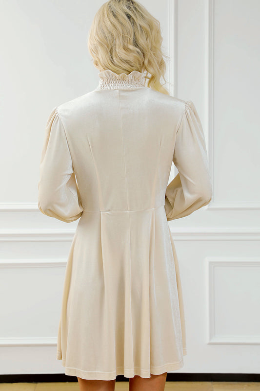 Smocked Mock Neck Lantern Sleeve Mini Dress