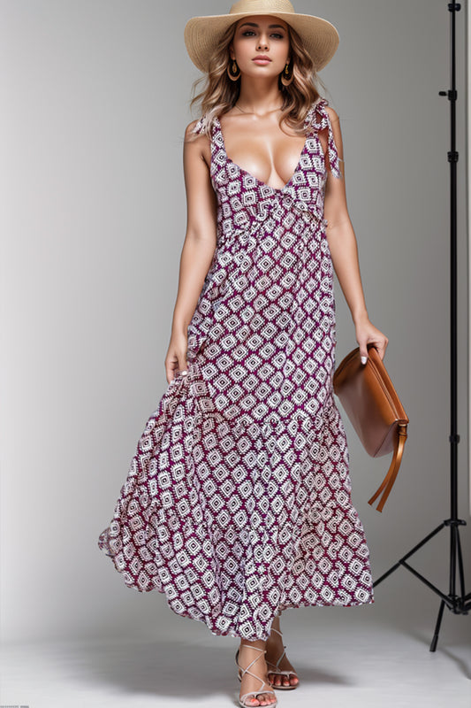 Backless Printed Plunge Sleeveless Dress