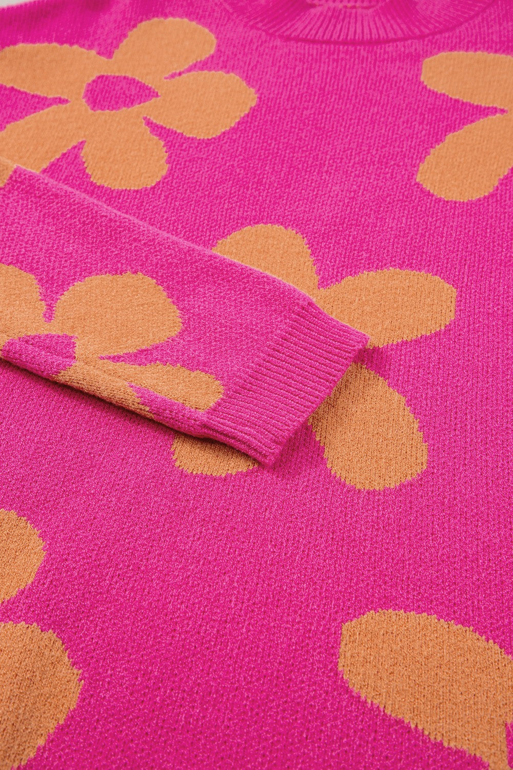 Flower Round Neck Long Sleeve Sweater