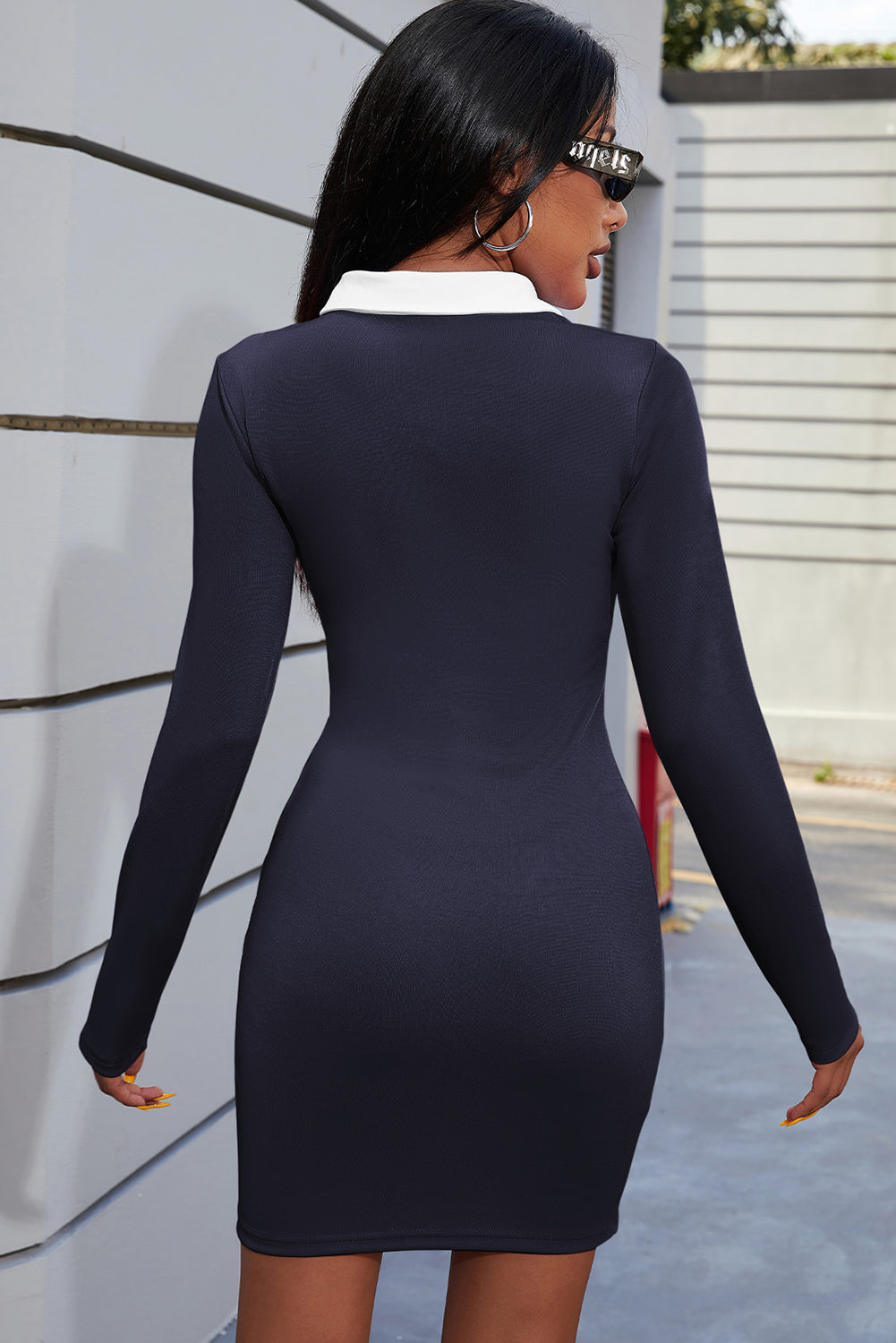 Graphic Collared Long Sleeve Dress
